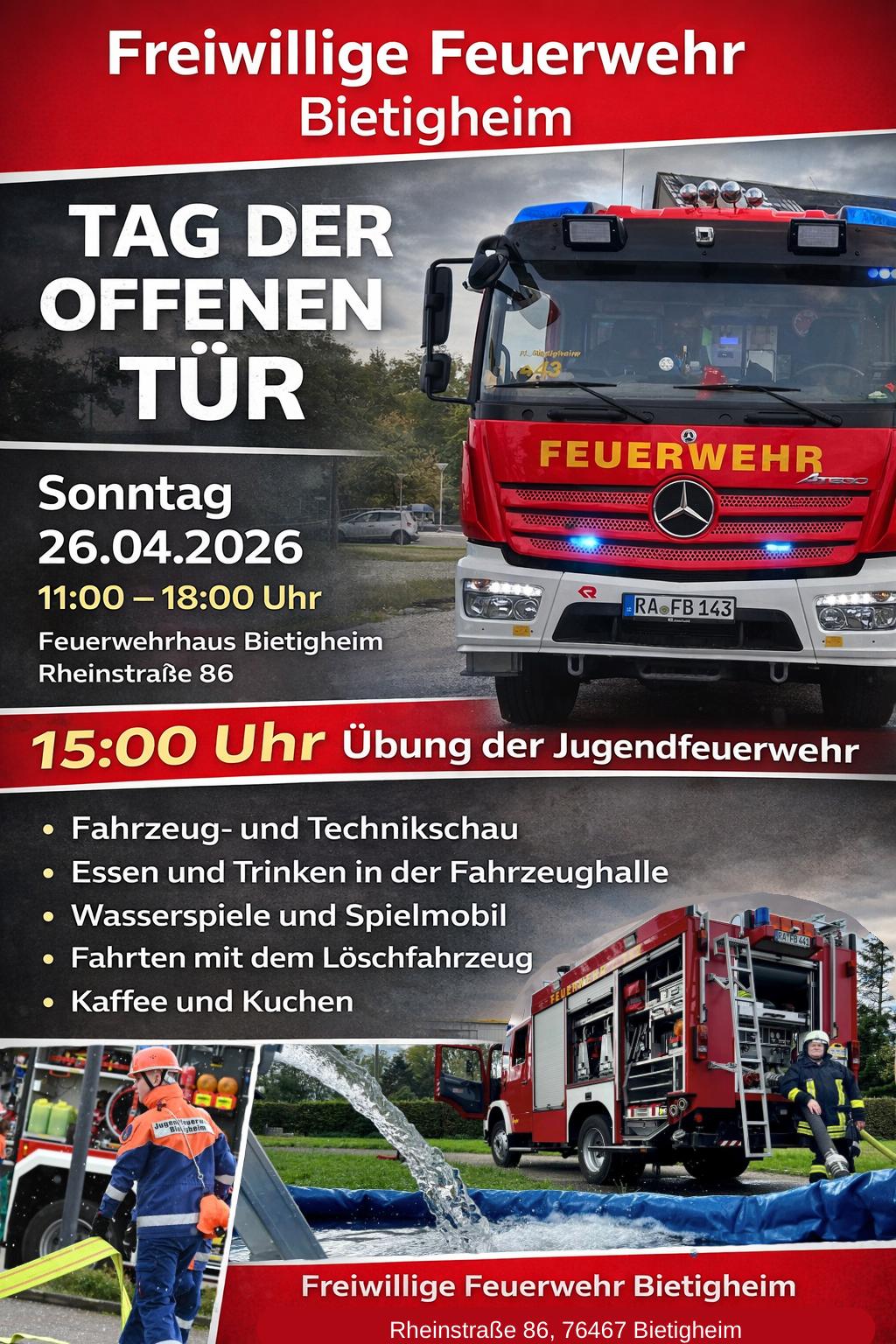18. März 2026Abteilungskommandant Markus Eisele eröffnete am Montag den 9.3.2026 um 19.00 Uhr die jährliche Abteilungsversammlung der Freiwilligen Feuerwehr Rastatt Abteilung Niederbühl und führte danach durch die 12 Tagesordnungspunkte. Als Gast konnte unser Ortsvorsteher Thomas Hrynkowsky begrüßt werden. Die Abteilung Niederbühl besteht aktuell aus 82 Mitgliedern. Davon sind 48 in der Einsatzabteilung und 16 Mitglieder in der … Read More
